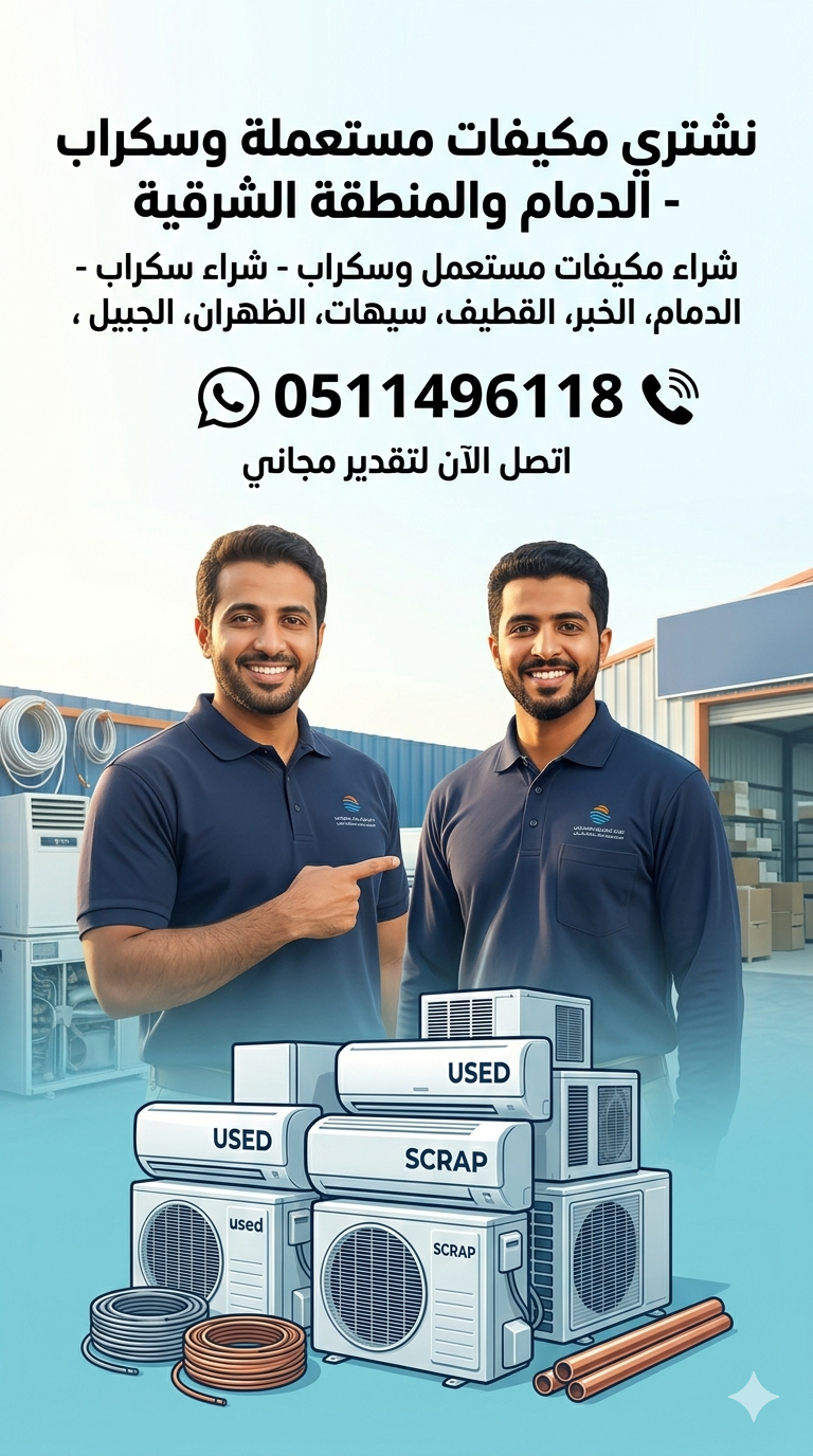 لماذا تختارنا كأفضل مشتري مكيفات وسكراب في المنطقة؟بفضل خبرتنا الطويلة في سوق “الحراج” بالدمام والخبر، اكتسبنا ثقة آلاف العملاء من خلال التزامنا بتقديم السعر العادل والصدق في التعامل. نحن نتميز بسرعة الاستجابة؛ حيث نصل إليك في غضون وقت قصير من اتصالك، ونغطي مساحات واسعة تشمل الظهران، سيهات، القطيف، والأحساء. هدفنا هو بناء علاقة مستدامة مع عملائنا من خلال تقديم أفضل تجربة بيع ممكنة، بعيداً عن المماطلة أو بخس الأسعار.